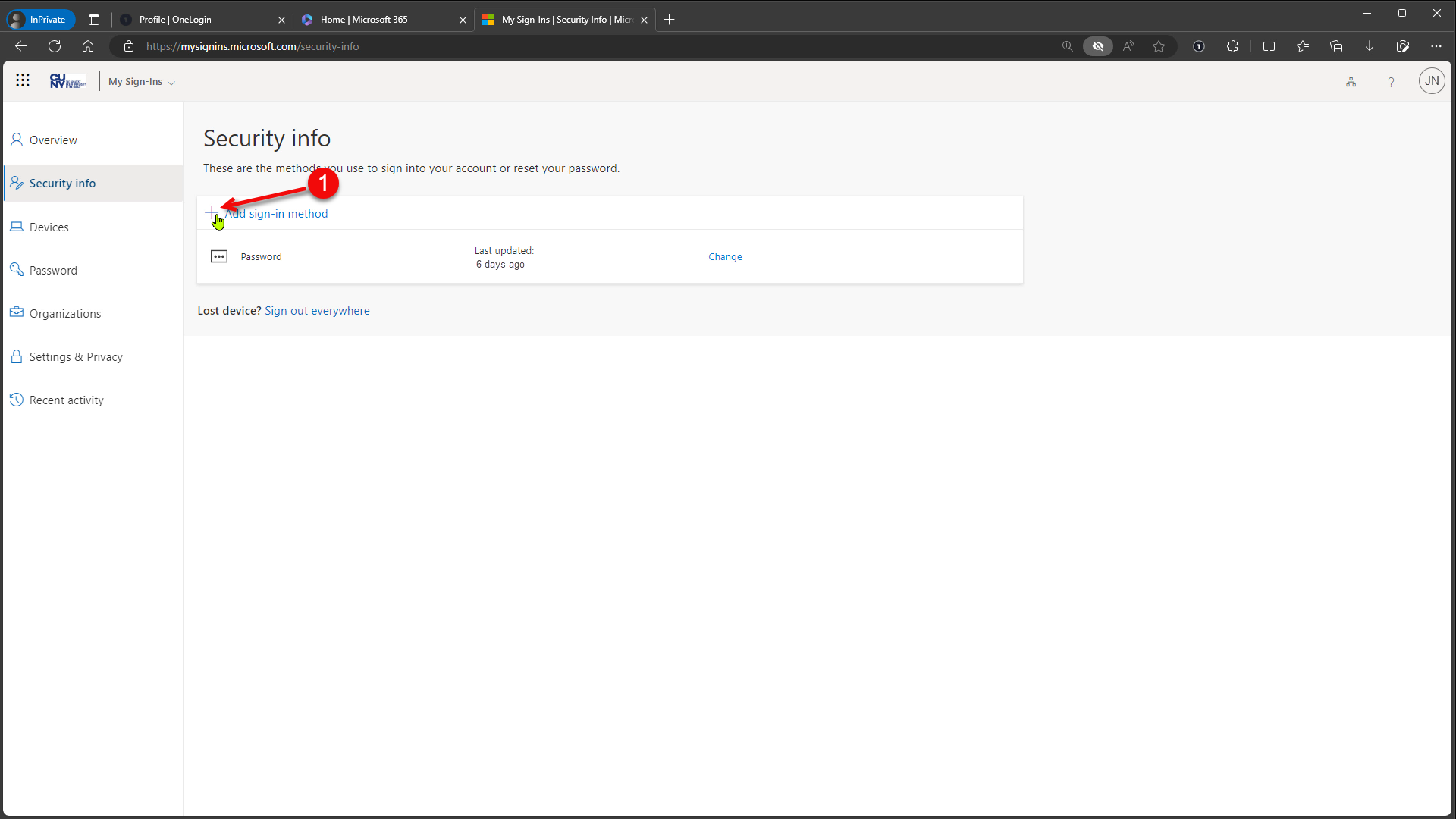 - Click on the + beside Add sign-in method