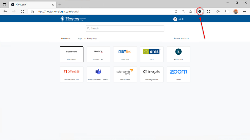 - Only Hostos Applications are displayed. Click on the app tile of choice