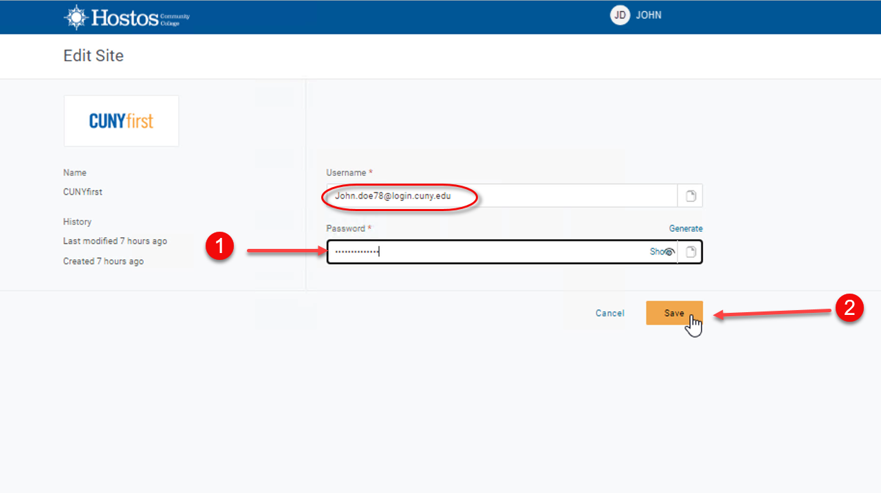 After you update your password in CUNYfirst, you must update this information within the Hostos SSO by going to the CUNY applications and updating it in the app as well. Failure to do this will result in failed CUNY log in attempt the next time you click on the tile.
