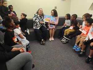 October 2022: VP Yates reads “I Went Walking” to children attending the Hostos Community College Children’s Center.