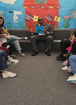 April 2024: On April 16th, Vice President Yates of SDEM read The Feelings Book by Todd Parr to our little Caimans!