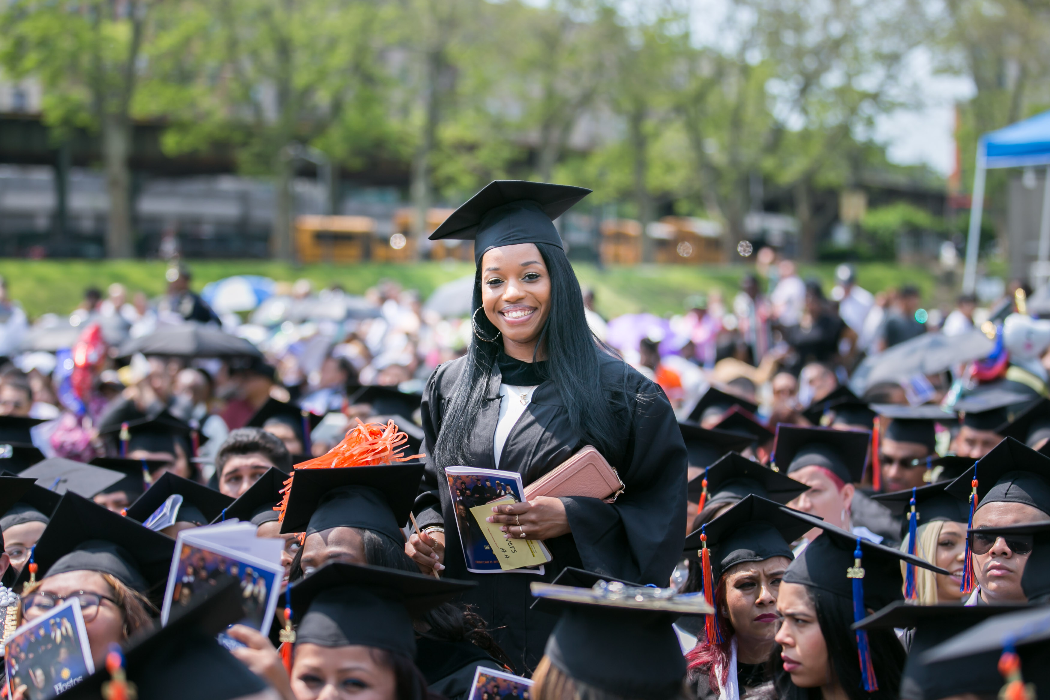 Members of the extended Hostos community-graduates, their families and friends, faculty, and distinguished guests and university officials-attended the ceremony including CUNY Trustee Hon. Mayra Linares-García; newly appointed Senior Vice Chancellor Glenda Grace. Esq.; New York Senator Chuck Schumer, who for years has annually shown up to be a part of Hostos Community College commencement exercises; and CUNY Chancellor Félix V. Matos Rodríguez who delivered his first keynote speech as Chancellor.