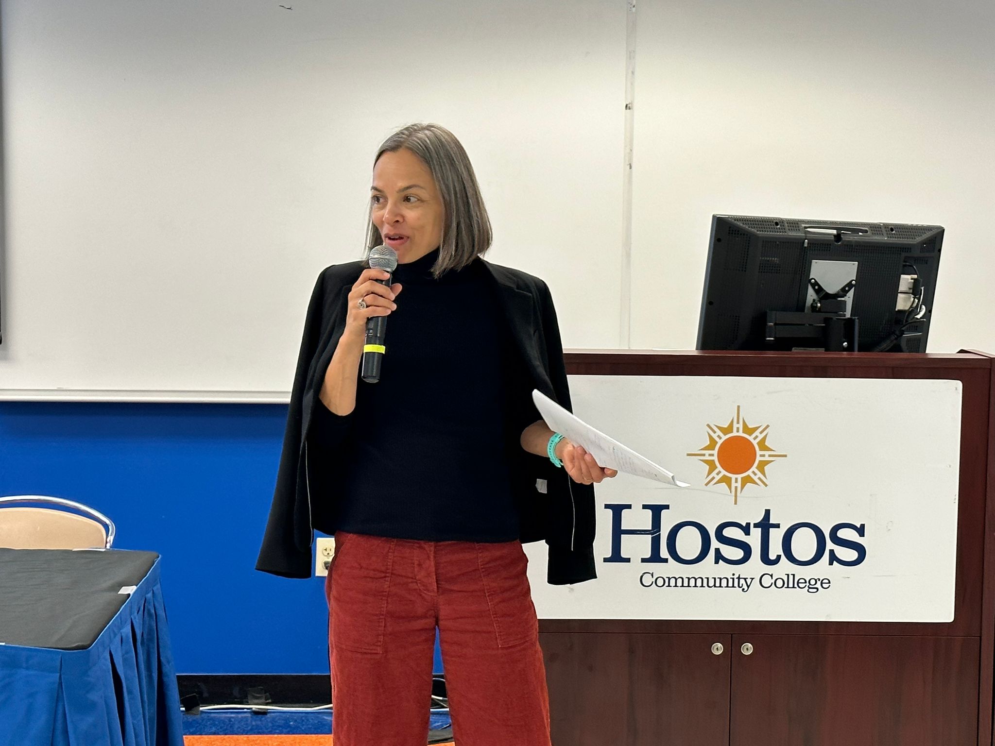 The program continued with an overview of the teacher education programs at Hostos Community College, with introductions by Dr. Shiang-Kwei Wang, Provost and Vice President of Academic Affairs, and presented by Dr. Jacqueline DiSanto, Professor and Chair of Education; Professor Madeline Ford, Chief Librarian; Dr. Sherese A. Mitchell, Professor of Early Childhood Education; and Samuel Byrd, Director of College Transition and Alternative Credit Programs.