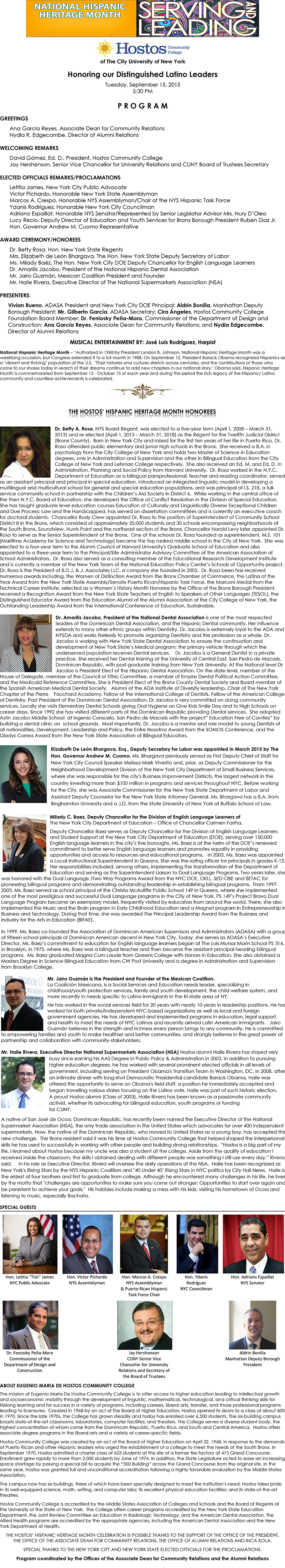 National Hispanic Heritage Month: Honoring Our Distinguished Latino Leaders Date: October 5, 2015 Time: 4:18 PM Click here for full printable program